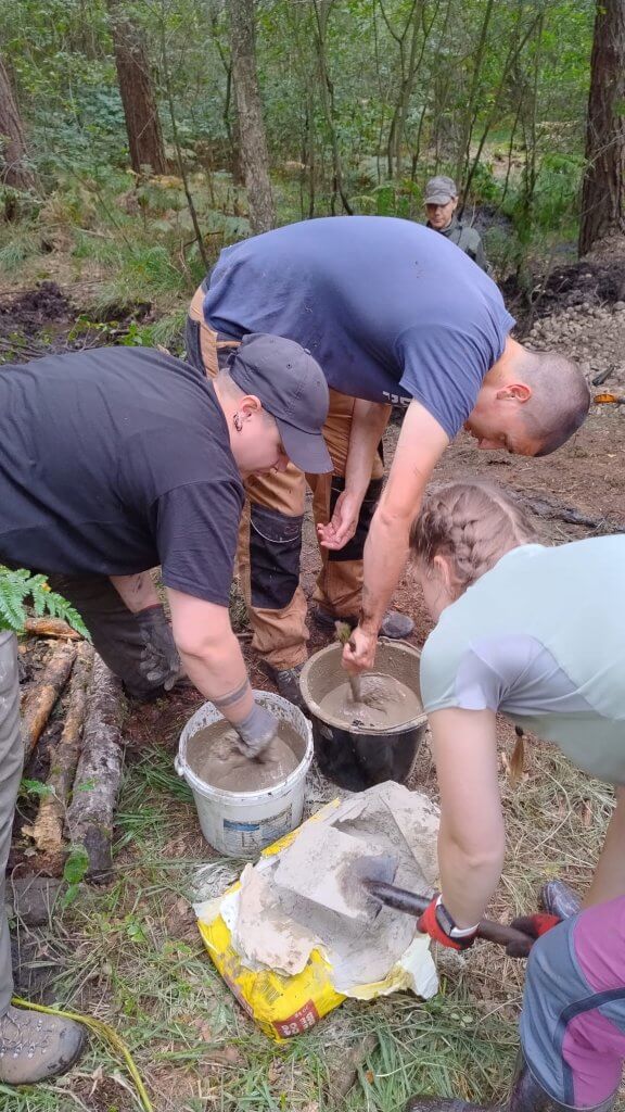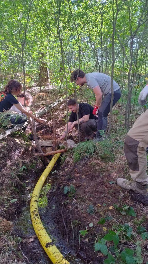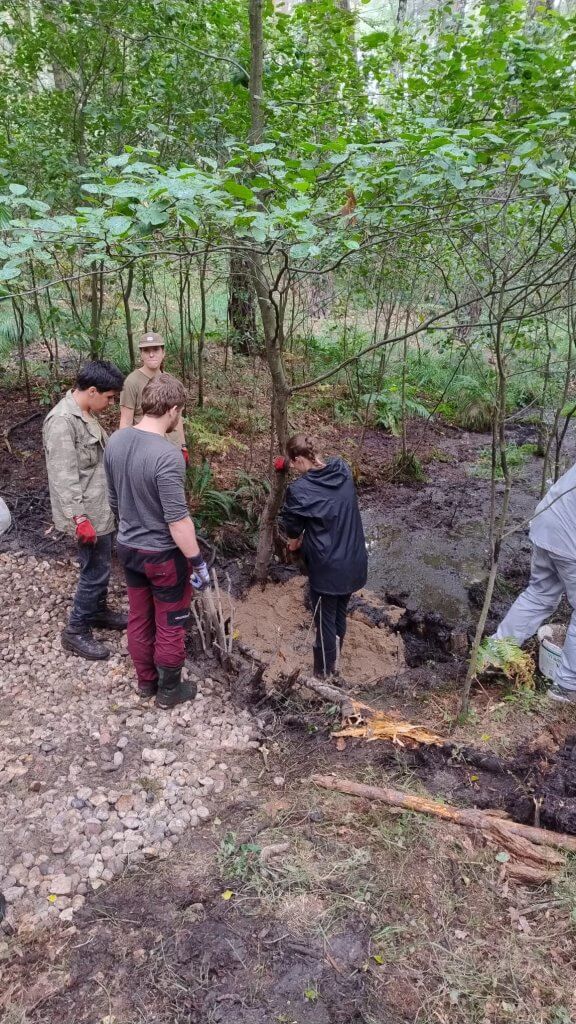 „Každý den jsme se vydávali z ubytování dlouhou cestou přes město a les k našim stanovištím. Pracovali jsme v malých skupinkách, často doslova po pás v bahně. Přehrady jsme stavěli z klád, kamenů a písku, a postupně tak vznikaly malé valy, které dokázaly přesměrovat vodu zpět do mokřadů. Nebylo to jednoduché, ale vidět, že voda zůstává v krajině díky našim rukám, bylo ohromně motivující,“ vysvětluje Nela.